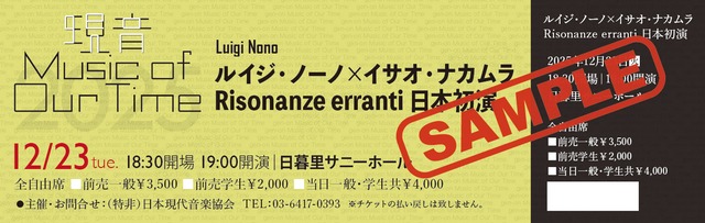 【12/23座席当日券一般学生共通】ルイジ・ノーノ×イサオ・ナカムラ Risonanze erranti 日本初演