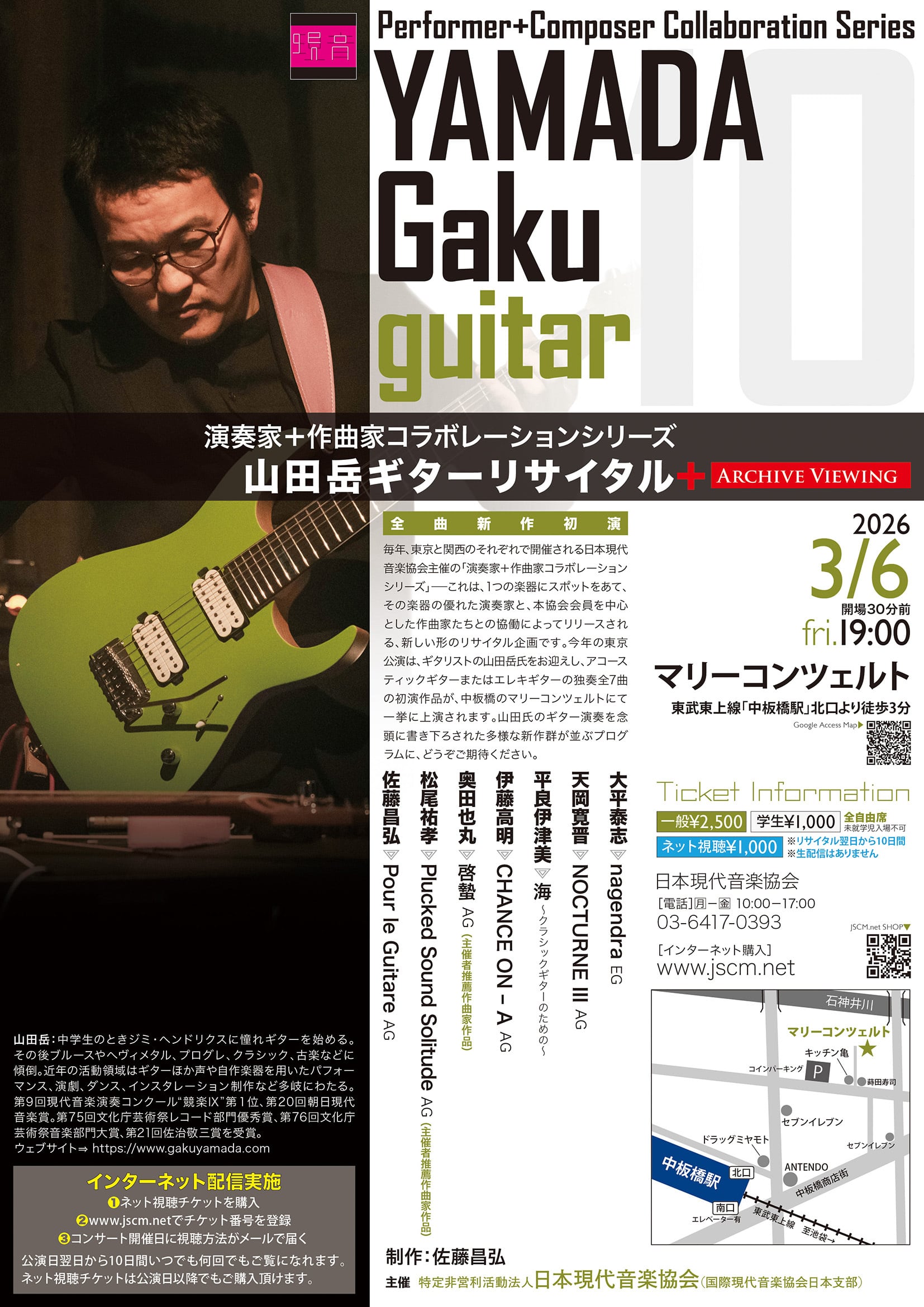 【3/6ネット視聴チケット】山田岳ギターリサイタル