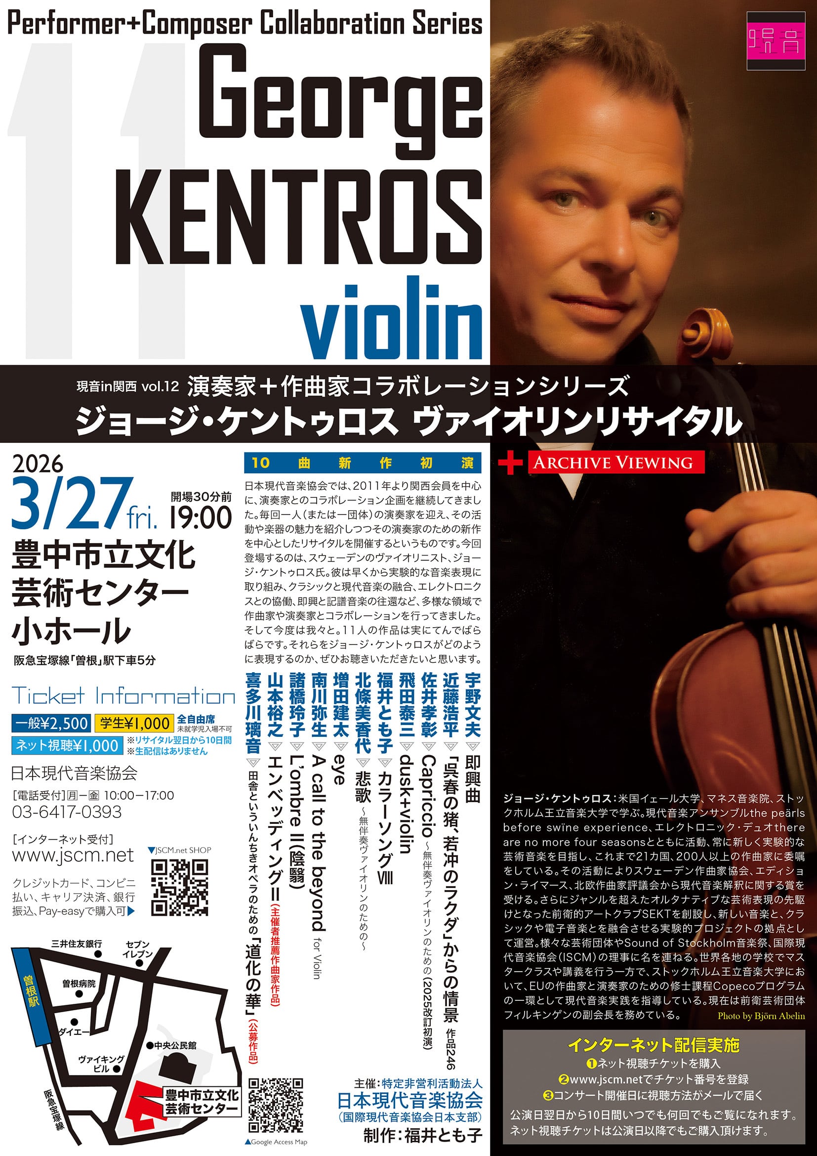 【3/27座席学生券】ジョージ・ケントゥロス ヴァイオリンリサイタル